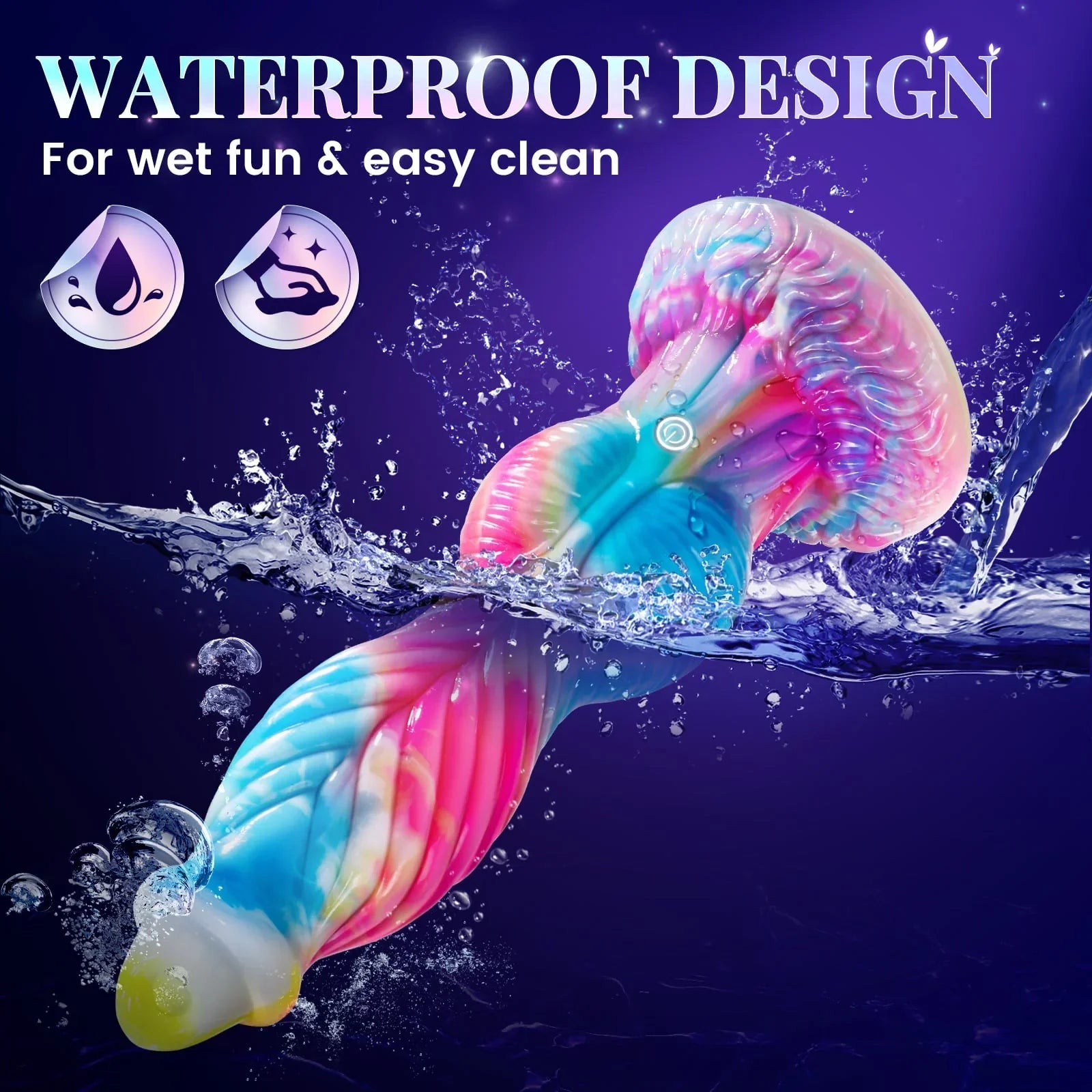 This colorful fantacy huge dildo is featured with 7 thrusting and vibrating modes, high-looking design and powerful functions, you will fall in love with it. The ideal for anal, G or U-spot stimulation. Soft silicone body-safe slilcone material, easy to use and 100% waterproof, you can enjoy it at bathroom. The length is 10.2inch, longer than normal penis, it will make you get more pleasure for expert player. super powerful suction cup, it can be very stable for using without falling off. So just playing it at your living room, bedroom, bathroom or anywhere you want.