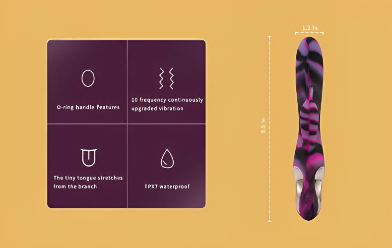 Appreciating an aurora show is such a thrilling pleasure from the bottom of heart! Its beauty lies in its sparkling colors and rareness. We incorporated the colorful aurora into the sex massager to create an absolutely unforgettable fantasy vibrator. It will light up your personal belongings drawer. Equipped with an O-ring handle, it can be easily guided to the part you desire to be comforted, and make the pussy-inserting easier. When the insertable shaft is placed correctly, the small head with a tiny tongue will aim right at the clitoris. It works up and down, left and right to slap the most sensitive external point of women. The vibration intensity inside and outside the body changes with the mode switch (totally 10 modes can be adjusted). In terms of the durability of this toy, the combination of high-quality silicone and ABS ensures safety, comfort and toughness. Plus, it is completely waterproof.