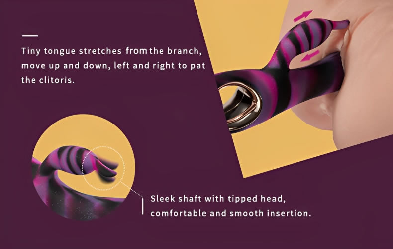 - Tiny tongue stretches from the branch, moves up and down, left and right to pat the clitoris.