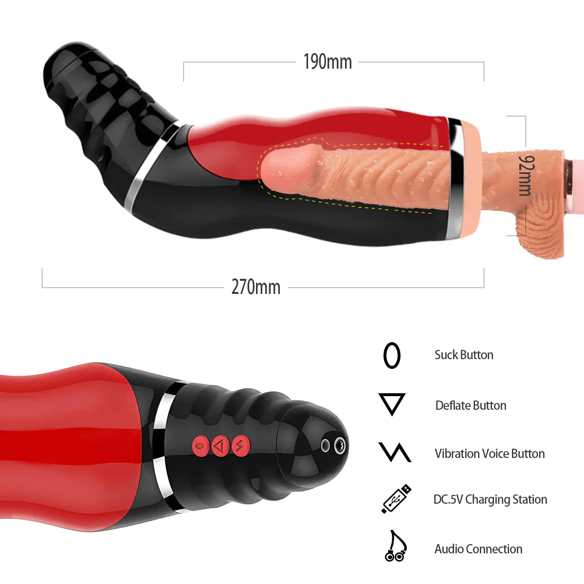 Deep throat sucking · Airbag technology · 10 vibration modes · 5 Completely different airbag modes · Sexy moaning · Flexible hand control