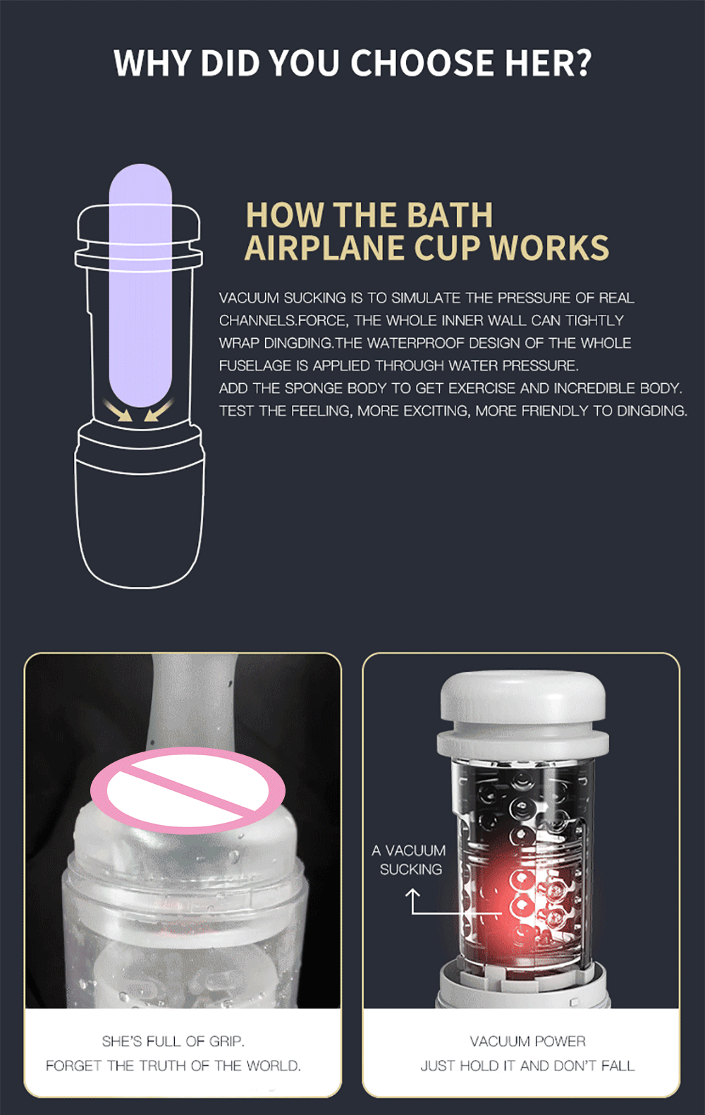 *Spin in water + suck, the first masturbation cup that can be used in water!